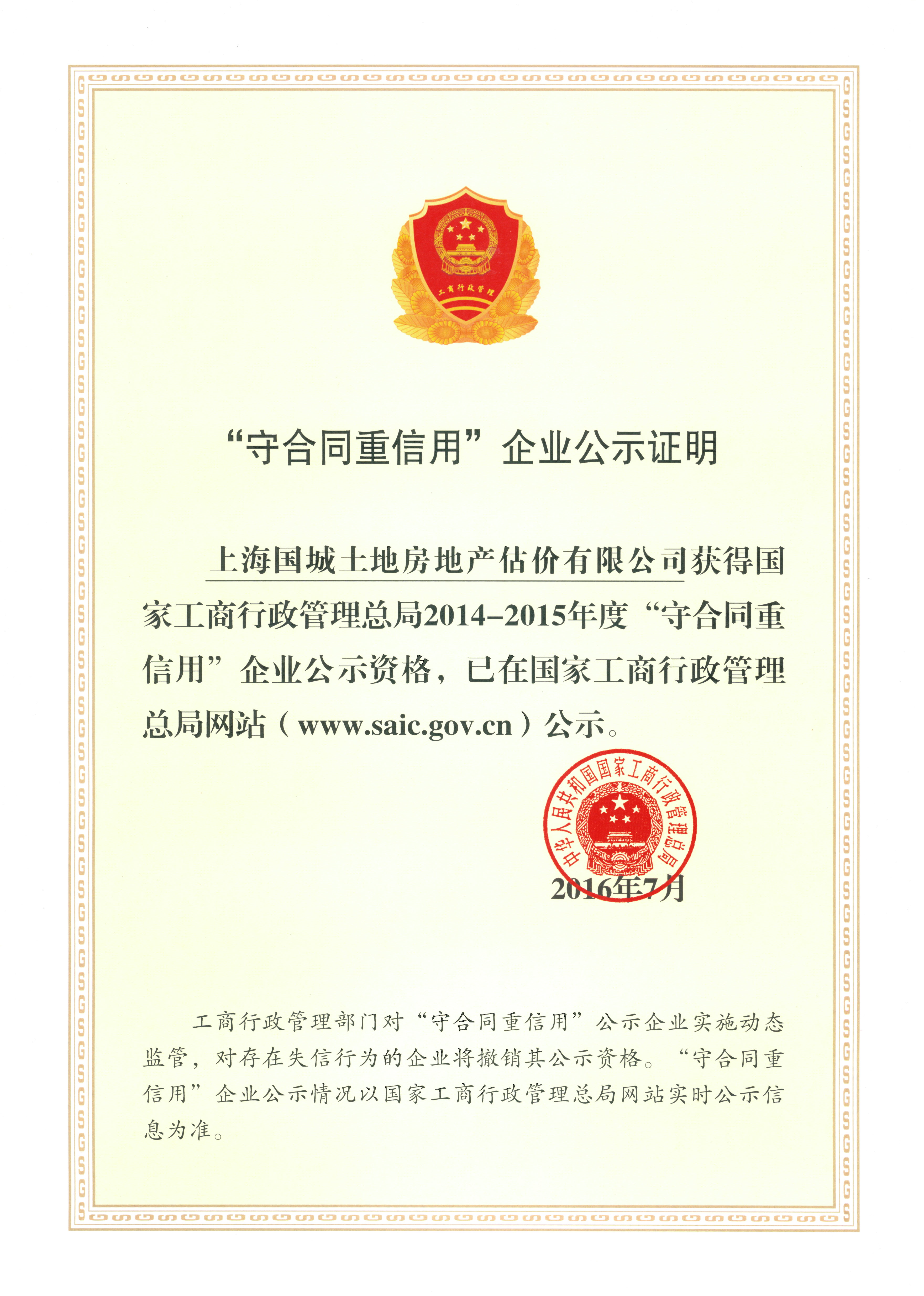 上海市守合同重信用企业